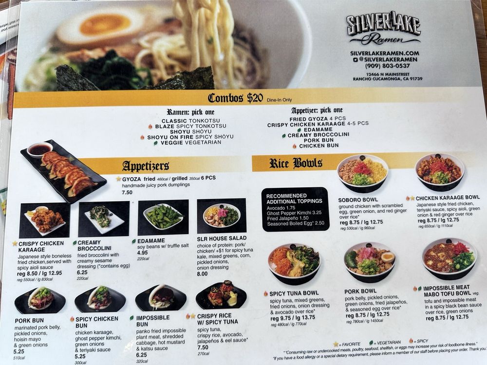 Silverlake Ramen Rancho Cucamonga Menu (Update 2025)