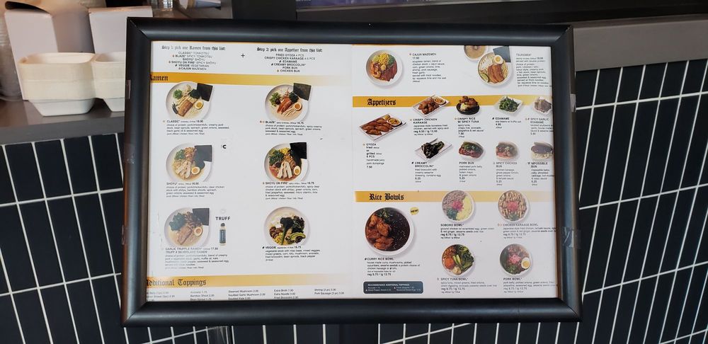 Highlighting the menu are dishes like the rich and creamy Classic Ramen and the elegantly layered Garlic Truffle Ramen, both showcasing thoughtfully chosen toppings and robust broths. For a spicy twist, the Blaze Ramen tantalizes the taste buds, while the Cajun Mazemen offers a refreshing departure from conventional flavors.